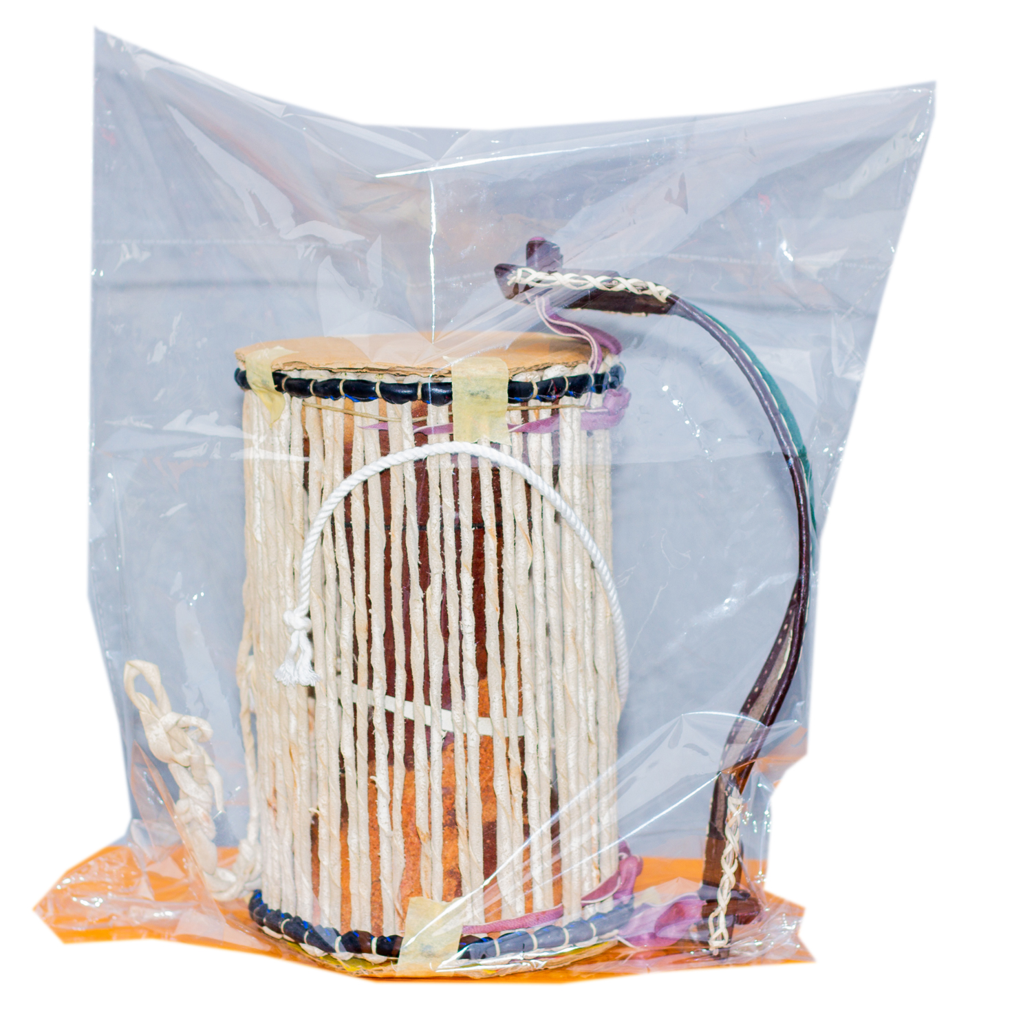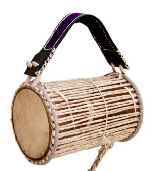 drum face to prevent tear. Tune the drum using the rope tuner attached to it. Ensure wooden