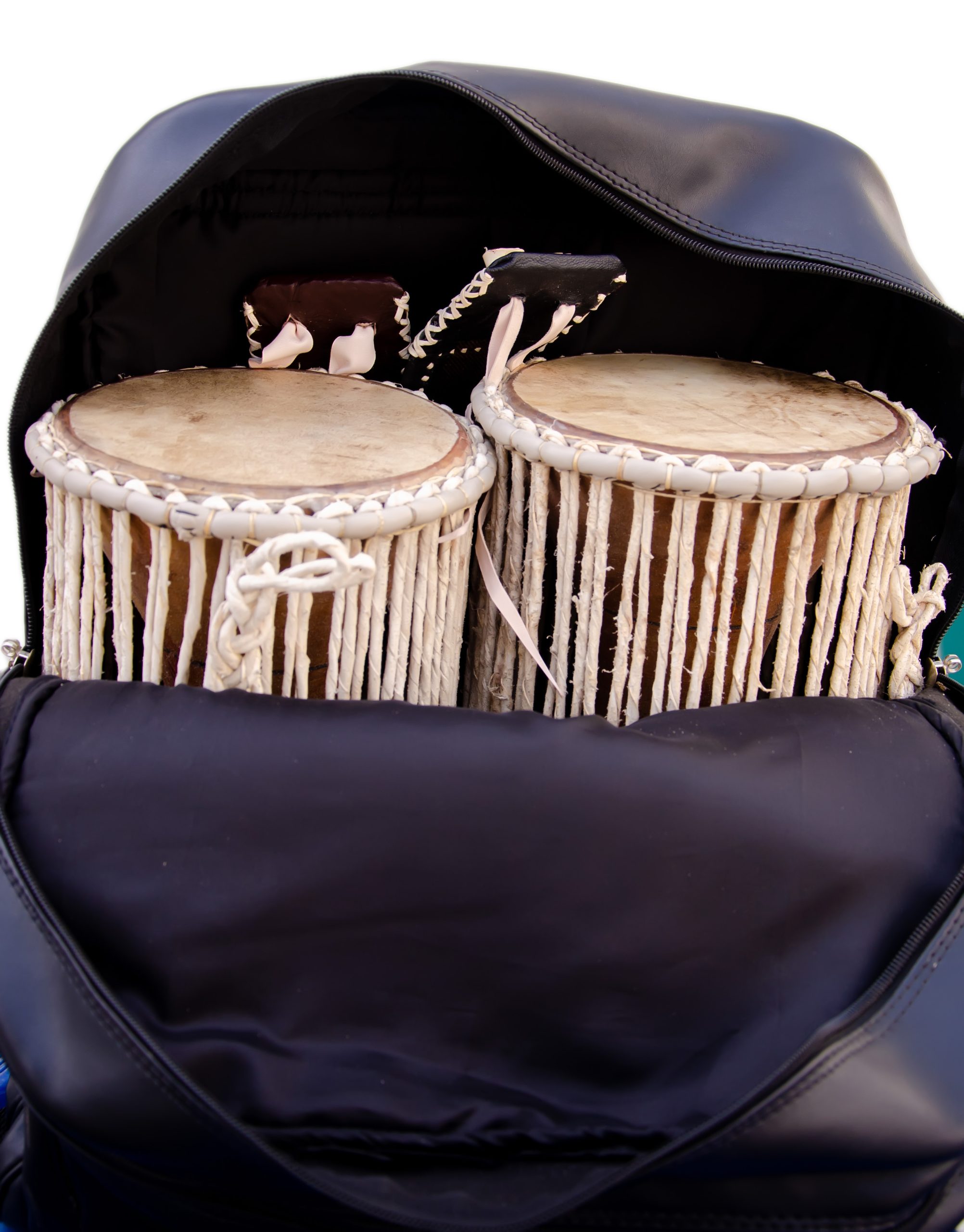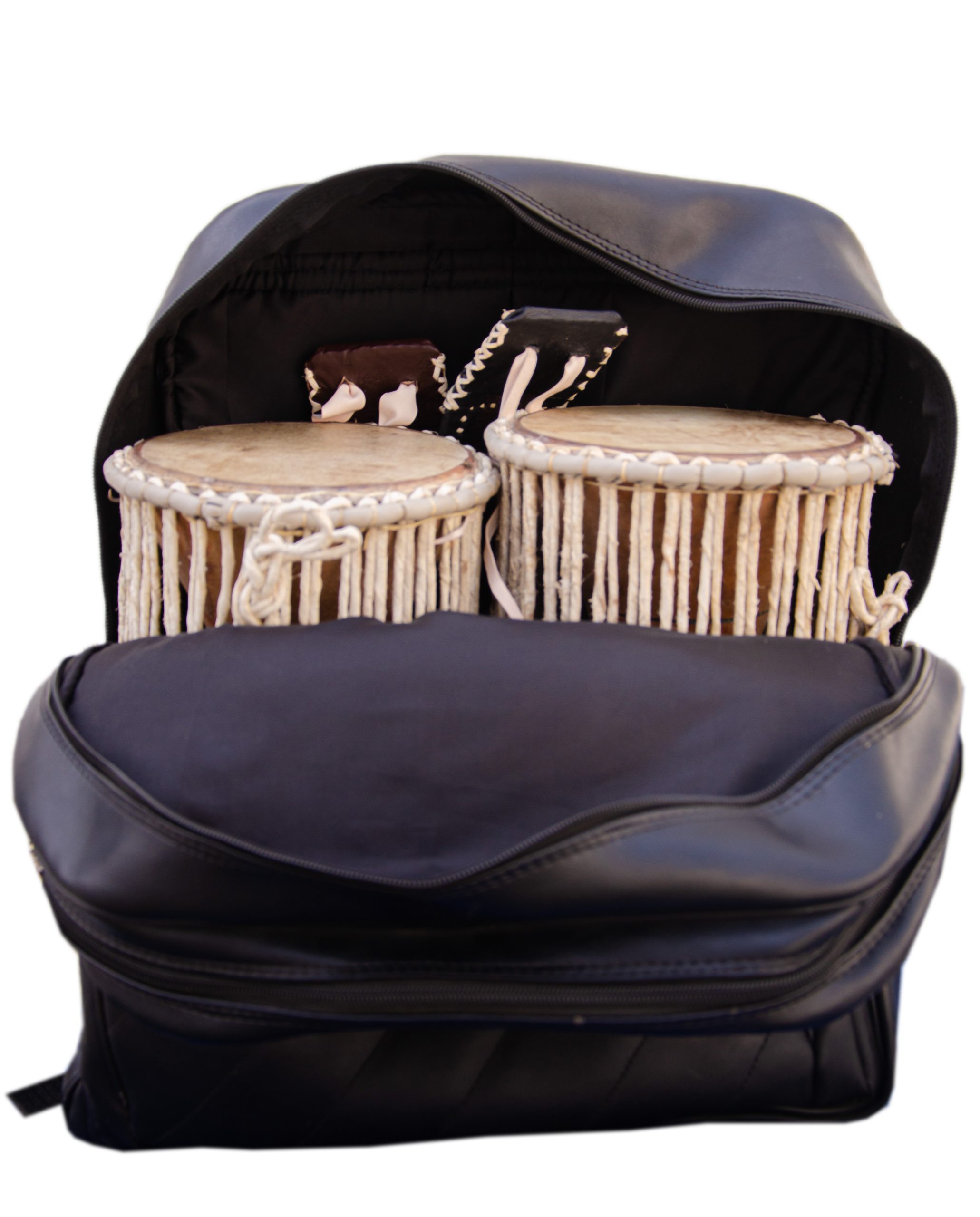 Waterproof leather bag for carrying and storage of two Talking drums.